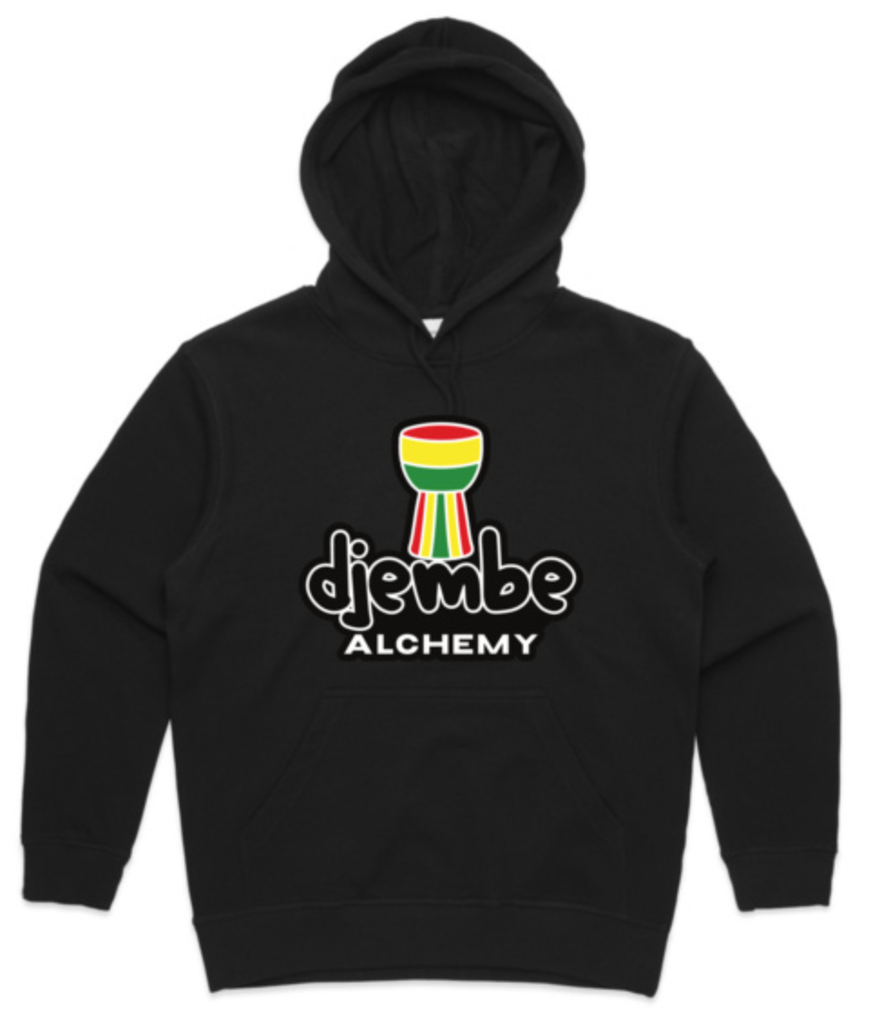 Djembe Alchemy Women’s Hoodie. Single or double sided print.